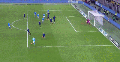 第9分钟,图拉姆助攻,迪马尔科小角度抽射远角破门,国米1-0那不勒斯