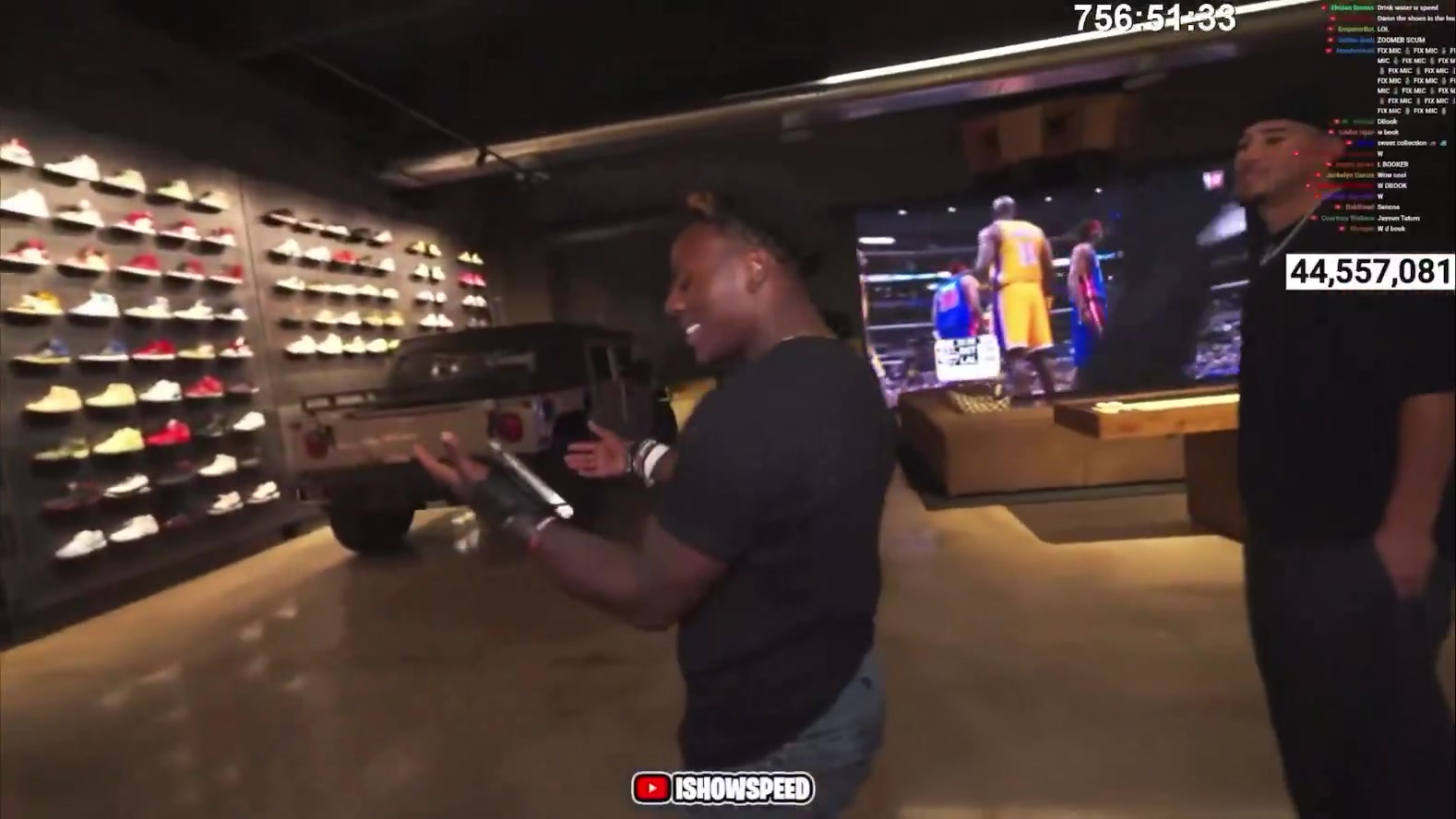 搁家开商场呢布克车库墙上满是球衣球鞋珍藏甲亢哥看傻了都