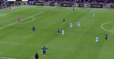 第9分钟,图拉姆助攻,迪马尔科小角度抽射远角破门,国米1-0那不勒斯