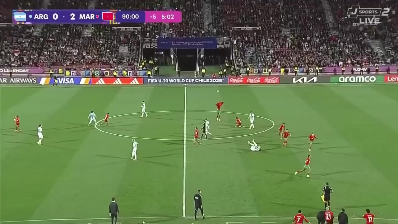 阿根廷门将出击放倒对
